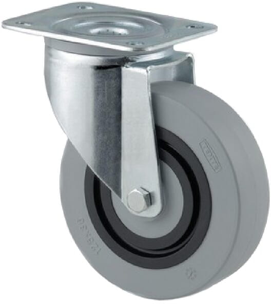 Koła skrętne z powierzchnią z szarego poliamidu z gumowym rdzeniem 3470HUR100P62