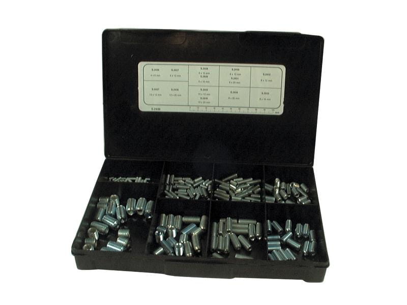 - Zestaw zawiera20 x S.2926 Wymiar: M4 x 6mm (Din 916) Wytrzymałość na rozciąganie: 14.9. 20 x S.2927 Wymiar: M4 x 12mm (Din 916) Wytrzymałość na rozciąganie: 14.9. 20 x S.2928 Wymiar: M5 x 10mm (Din 916) Wytrzymałość na rozciąganie: 14.9. 20 x S.2929 Wymiar: M5 x 16mm (Din 916) Wytrzymałość na rozciąganie: 14.9. 20 x S.2930 Wymiar: M6 x 12mm (Din 916) Wytrzymałość na rozciąganie: 14.9. 20 x S.2931 Wymiar: M6 x 20mm (Din 916) Wytrzymałość na rozciąganie: 14.9. 20 x S.2932 Wymiar: M8 x 12mm (Din 916) Wytrzymałość na rozciąganie: 14.9. 20 x S.2933 Wymiar: M8 x 16mm (Din 916) Wytrzymałość na rozciąganie: 14.9. 20 x S.2934 Wymiar: M8 x 20mm (Din 916) Wytrzymałość na rozciąganie: 14.9. 10 x S.2935 Wymiar: M10 x 12mm (Din 916) Wytrzymałość na rozciąganie: 14.9. 10 x S.2936 Wymiar: M10 x 20mm (Din 916) Wytrzymałość na rozciąganie: 14.9. 10 x S.2937 Wymiar: M12 x 12mm (Din 916) Wytrzymałość na rozciąganie: 14.9. 10 x S.2938 Wymiar: M12 x 20mm (Din 916) Wytrzymałość na rozciąganie: 14.9.