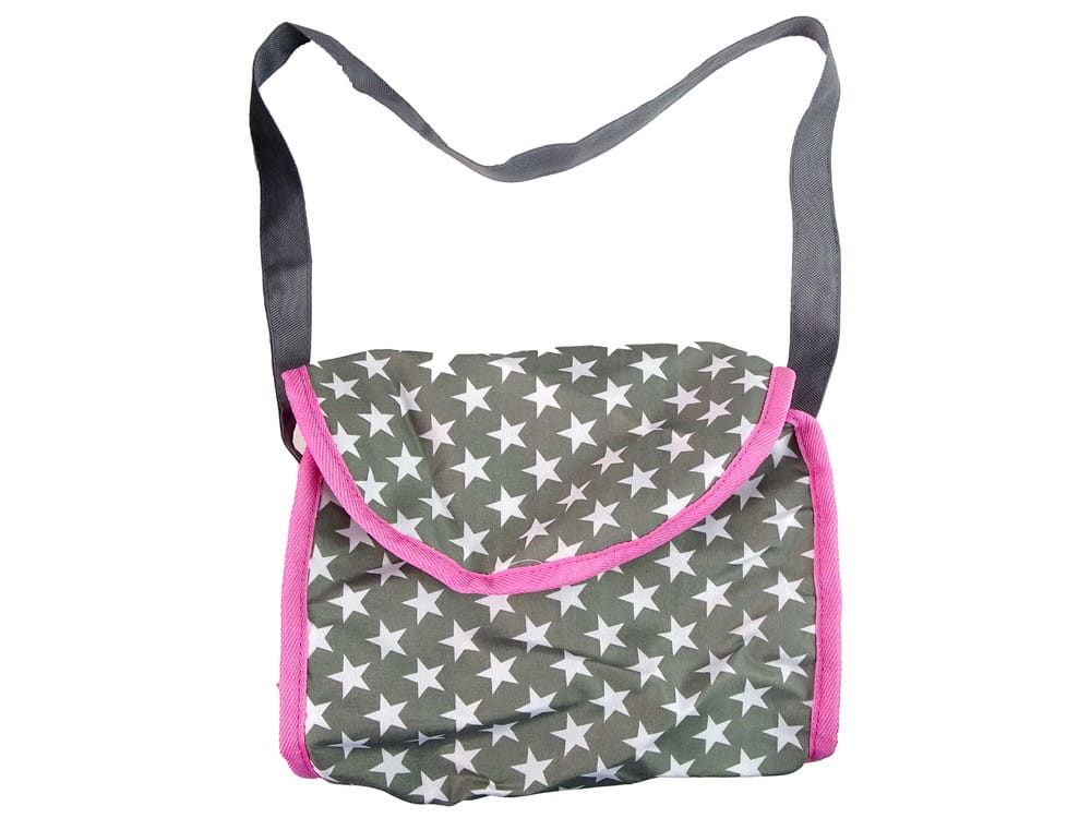Wózek z torbą ma szary kolor z białymi gwiazdkami, daje dużo uroku. Wzornictwo przypomina prawdziwy odpowiednik, co dodaje realizmu. Konstrukcja wykonana jest z solidnych i wytrzymałych rurek aluminiowych o srebrnym kolorze, które połączone są czarnymi, plastikowymi łącznikami. Użycie do produkcji wózka wysokogatunkowego tworzywa odpowiada za komfort i wygodę płynące z użytkowania zabawki, co w połączeniu z ulokowaniem wózka na czterech wąskich kołach podnosi łatwość prowadzenia wózka i manewrowania nim.