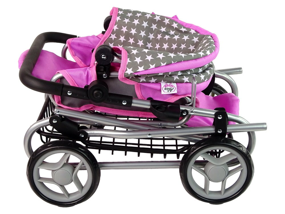 Wózek Dla Lalek Spacerówka 2 w 1 Torba Nosidełko Różowy Gwiazdki